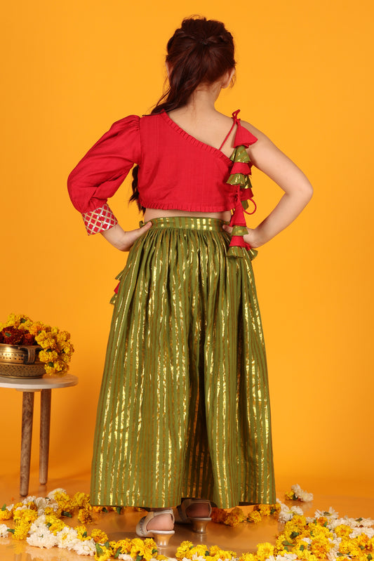 Jilmil Girls Mermaid Handembroidered Top with Multicolor cotton lehenga set (set of 2)