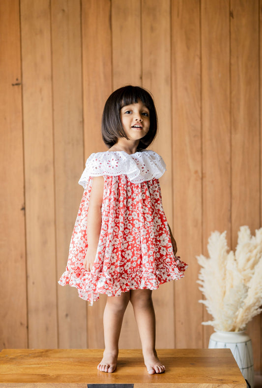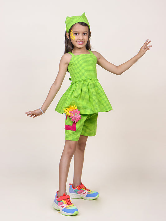 Girls Yellow Cotton Lurex Flounce Kurta Pyjama