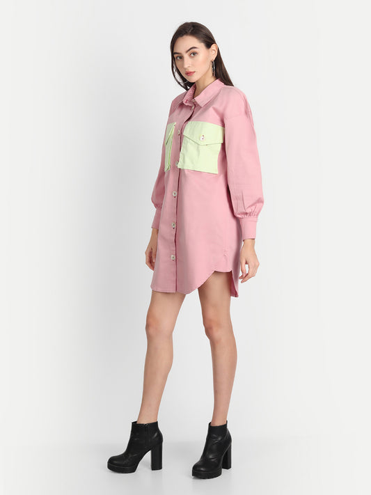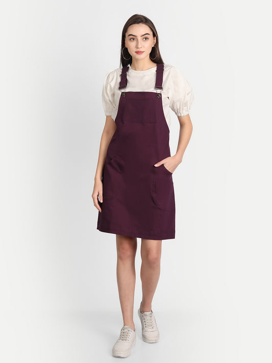 Purple Solid Corduroy Dungaree Dress With Blouse