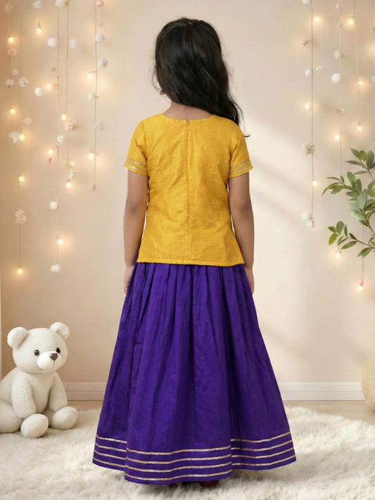 Girls Handworked Elephant Yellow Top and Purple Lehenga (Set of 2)