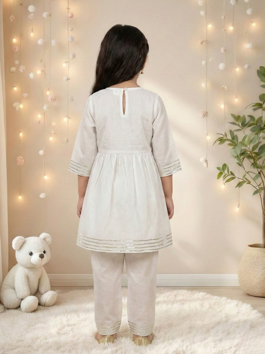 Girls White Embroidered Anarkali Kurti and Pant (Set of 2)