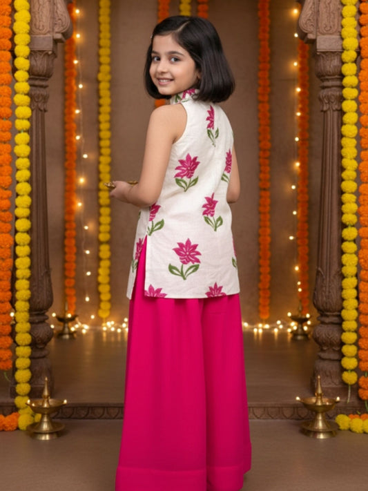 Girls White Top and Pink Palazzo (Set of 2)