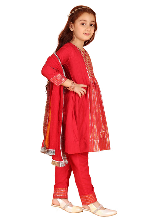 Jilmil Girls Anarkali Pink Silk Dress with Pant & Dupatta (set of 3)