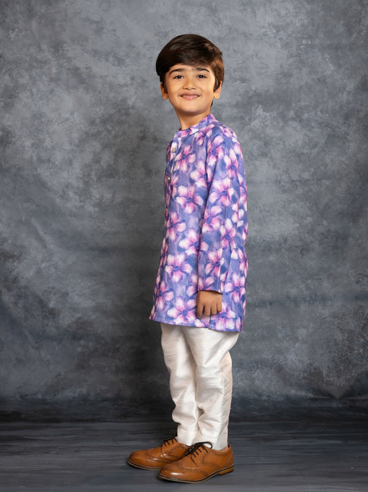 Boys Cotton Linen Digital Printed Purple Kurta with Pant (set of 2)