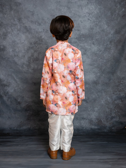 Boys Silk Kurta Pant with Multicolour Digital Printed Jacket (Set of 3)
