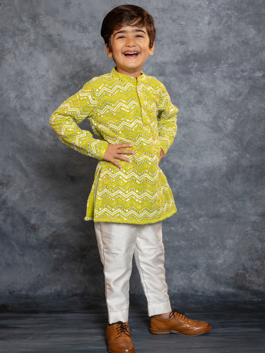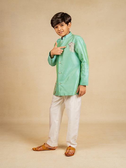 Boys Green Embroidered Kurta and Pant (Set of 2)