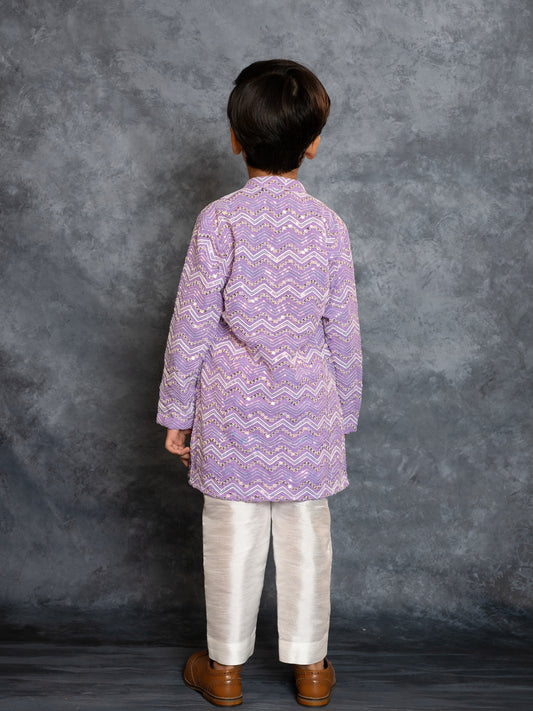 Boys Hand Embroidered Purple Kurta and Pant (Set of 2)