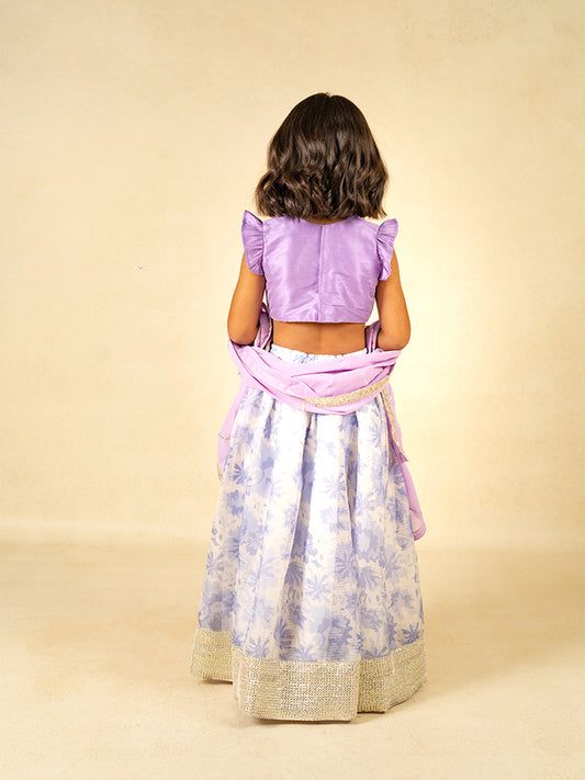 Girls Hand Embroidered Duck Top and Moonga Digital printed Lehenga with Dupatta (Set of 3)
