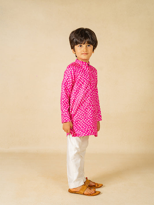 Boys Soft Cotton Digital Printed Pink Kurta with Banglori Silk Pant (Set of 2)