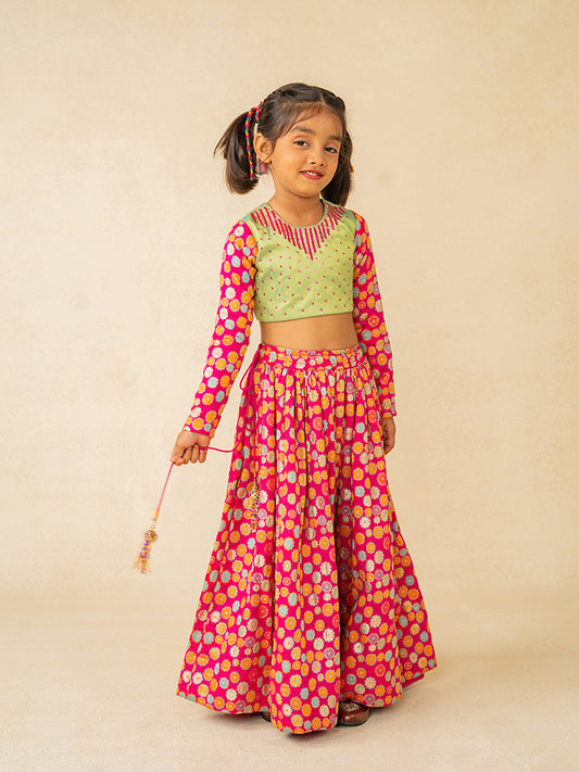 Girls Full Sleeve Hand Embroidered Blouse and Lehenga (Set of 2)