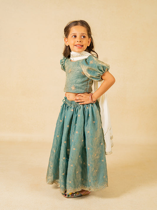 Girls Fendy Crush Blue Top and Lehenga with Georgette Dupatta (Set of 3)