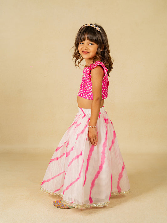 Girls Pink Hand Embroidered Top and Moonga Digital printed Lehenga with Dupatta (Set of 2)
