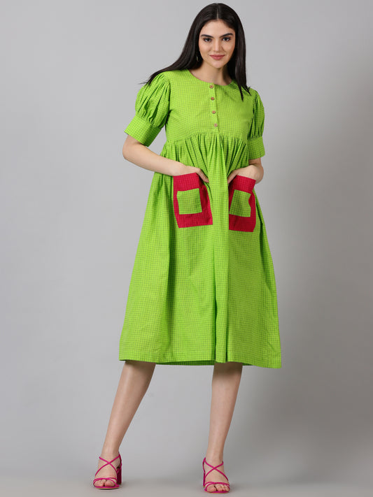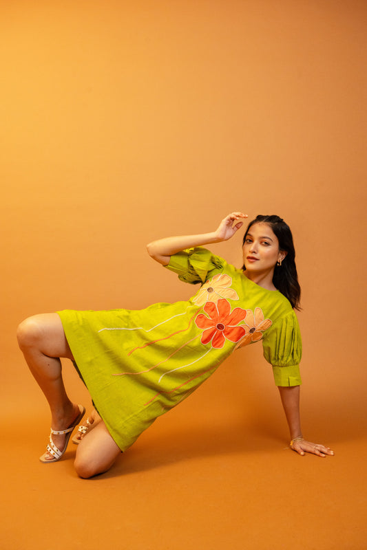 Plumeria Green Handcrafted Cotton Dress
