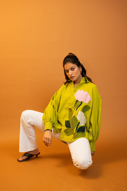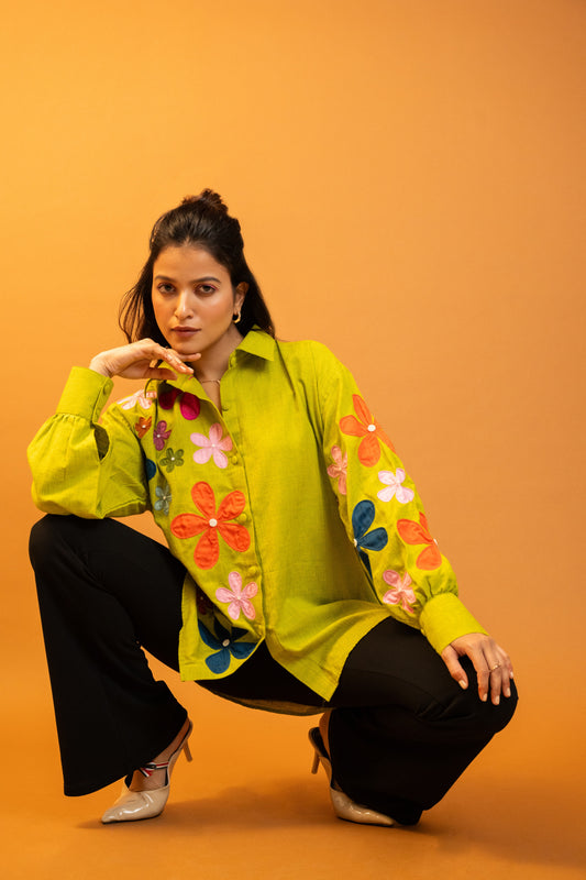Venus Green Handcrafted Cotton Over Sized Shirt