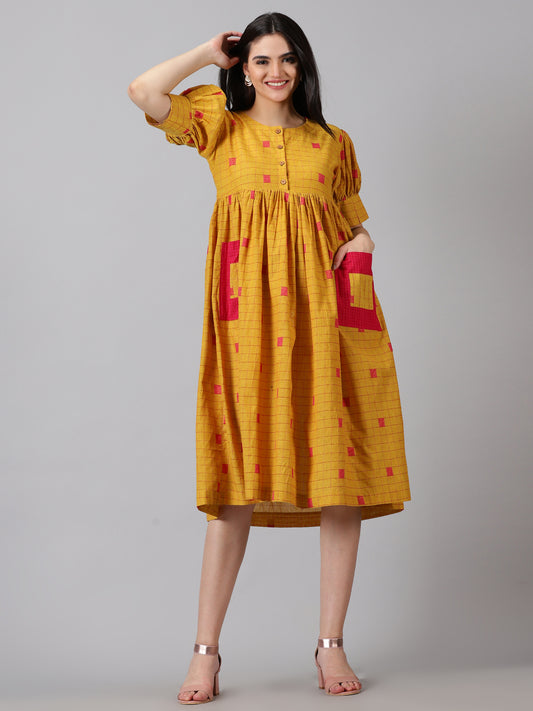 Mustard Fit & Flare Midi Dress