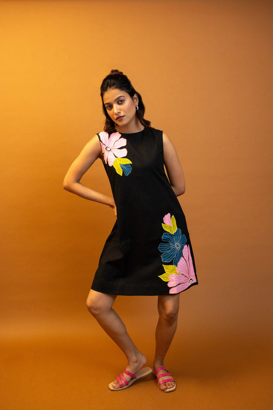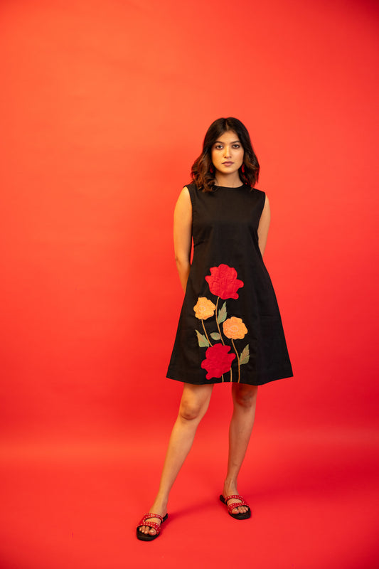 Rose Black Handcrafted Cotton Dress