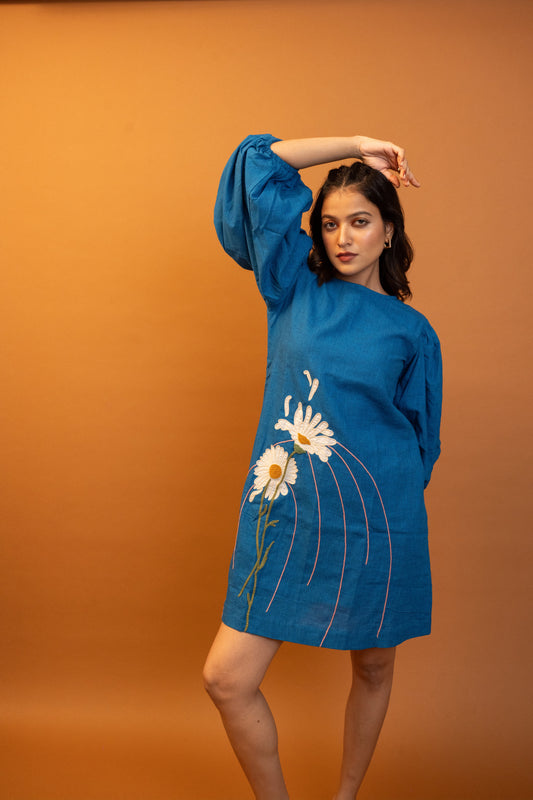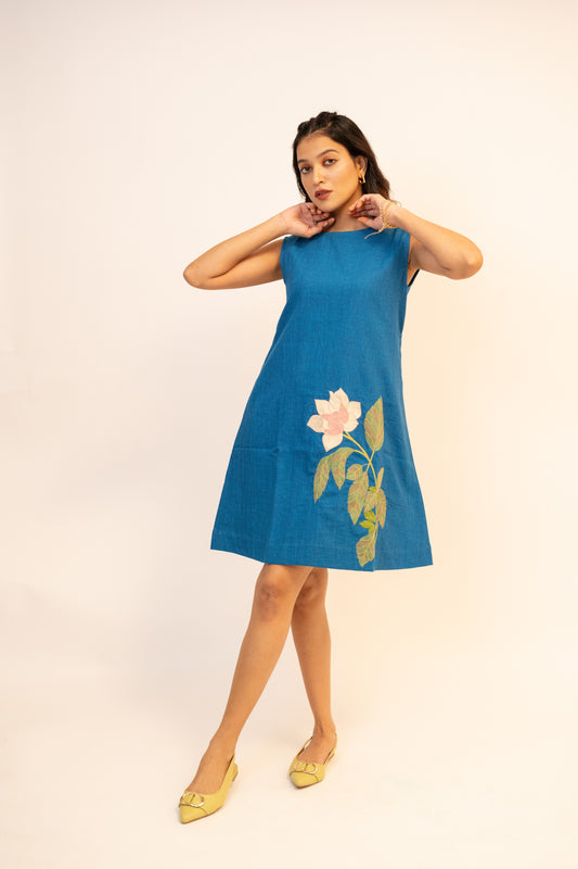 Camellia Blue Handcrafted Cotton Dress