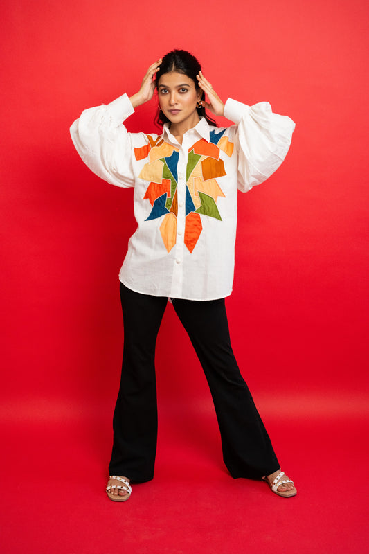 White Geometric Handcrafted Cotton Shirt