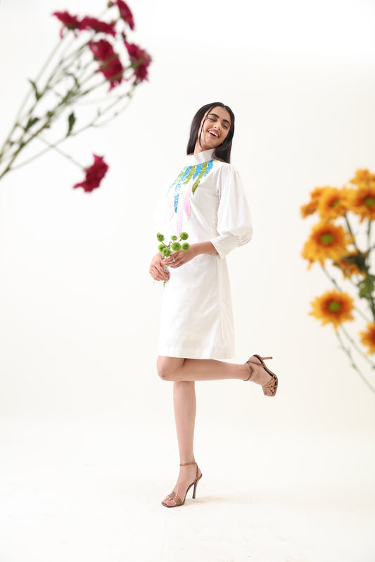 Imara White Handcrafted Cotton Dress